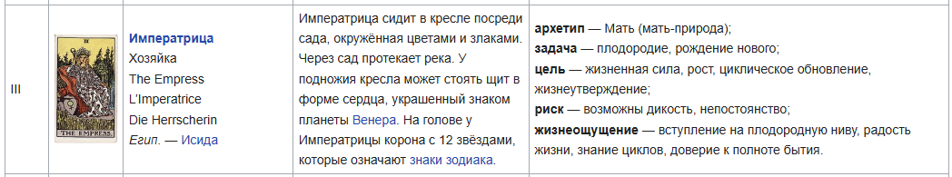 >>5659094 Тут на карте мы видим, что Императрица то не настоящая. Её коронует выдуманный персонаж. Сама Императрица склонила голову, её фигура затемнена, а вокруг неё животные приходят на поклон. Темка с животными вообще обычно не очень хорошая на картах и обычно является символом сатаны.