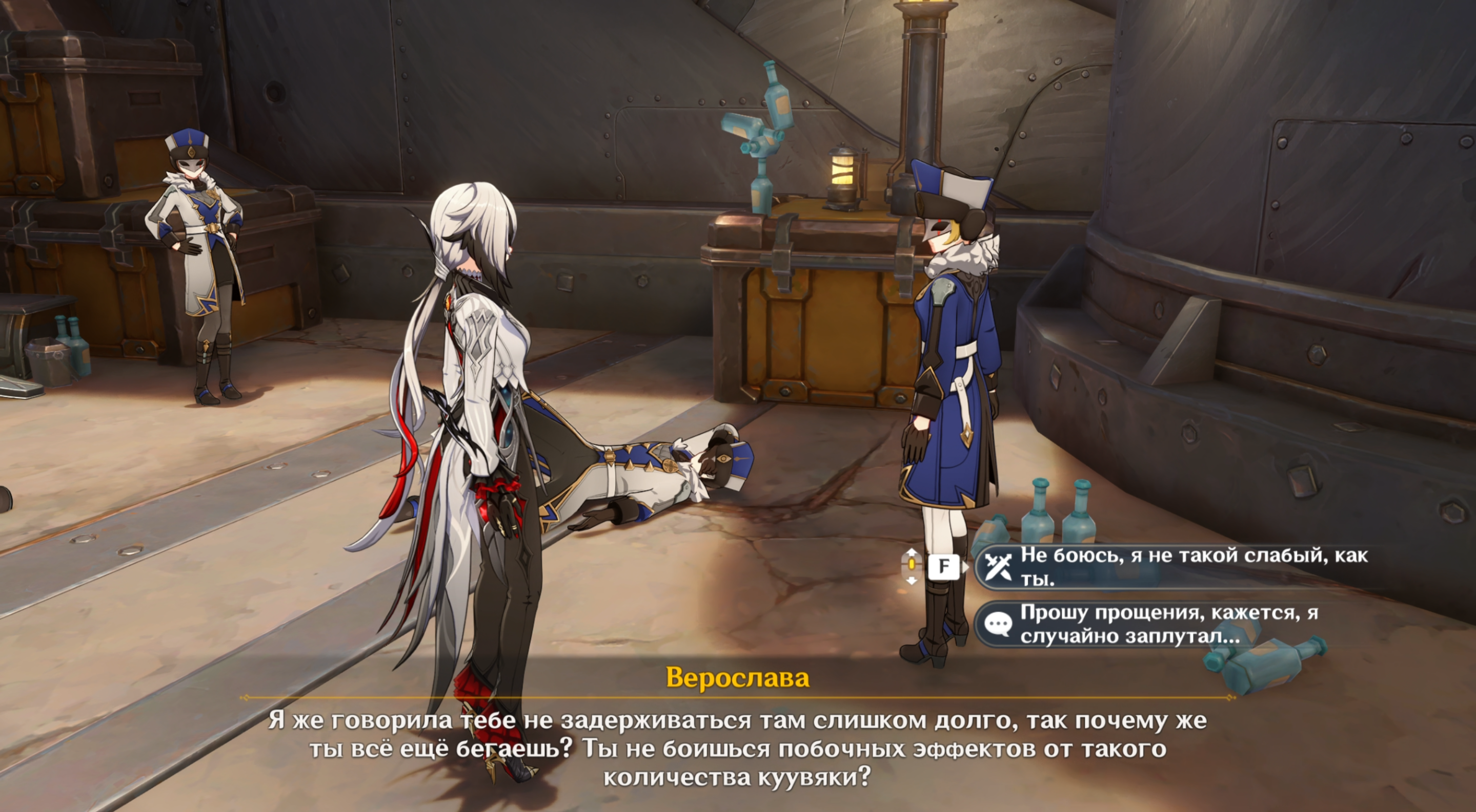 Я кстати не обращал внимания акцента раньше какая Фурина трусиха. В театре мне говорит, мол иди сам. Это её фича? Арлю испугалась, но та страшная, значит у её сюжетно от всего тряска?