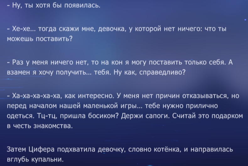 Только начал проходить сюжетку. Пока только про мартика начало, до дэнчика дракона не дошел, только до сандея, бля, впервые все читаю смотрю интересно и круто, если бы вырезать первые патча 3 калфореуса и калфореус был хотя бы на 50% такой как начало этой сюжетки, я бы сказал это заебись. Хз конечно че там дальше, но просто взять вот эту сюжетку и большую часть калфоеруса, где в патче интересного процентов 5 максимум, остальное филлерная вода от нейронки для растягивания, калфореусу нахуй не нужен был год сюжета, полгода концентрированной синемы можно было бы сделать, а не душить растянутым сном собаки про грекокал с титанами.