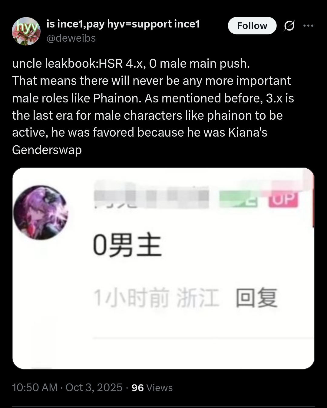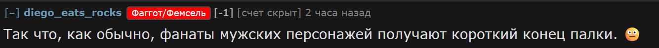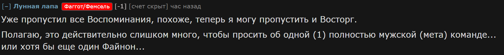 Сисы предпочли занести на дешёвую порнуху из ладса, а не на охуенно проработанного Фаенона. Теперь ляо начнет срать бездушными вайфами и сюжет станет таким же фемским кринжем как в геншине. Проиграли все в итоге кроме инцелов (но те проиграли по жизни).
