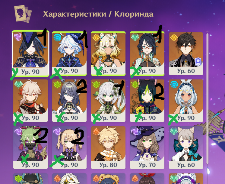 Решил в этот ваш 12 этаж сгонять. Первый зал на 2 звезды, пару секунд не хватает, мб если руки выпрямить, получится и на 3 закрыть. Второй зал на 2 половине дропнул, в лучшем случае 1 звезда будет, но не хочу и пытаться, третий зал даже не нюхал. На скрине мои пачки и зелёным отмечены прокачанные и более-менее одетые чемпики.