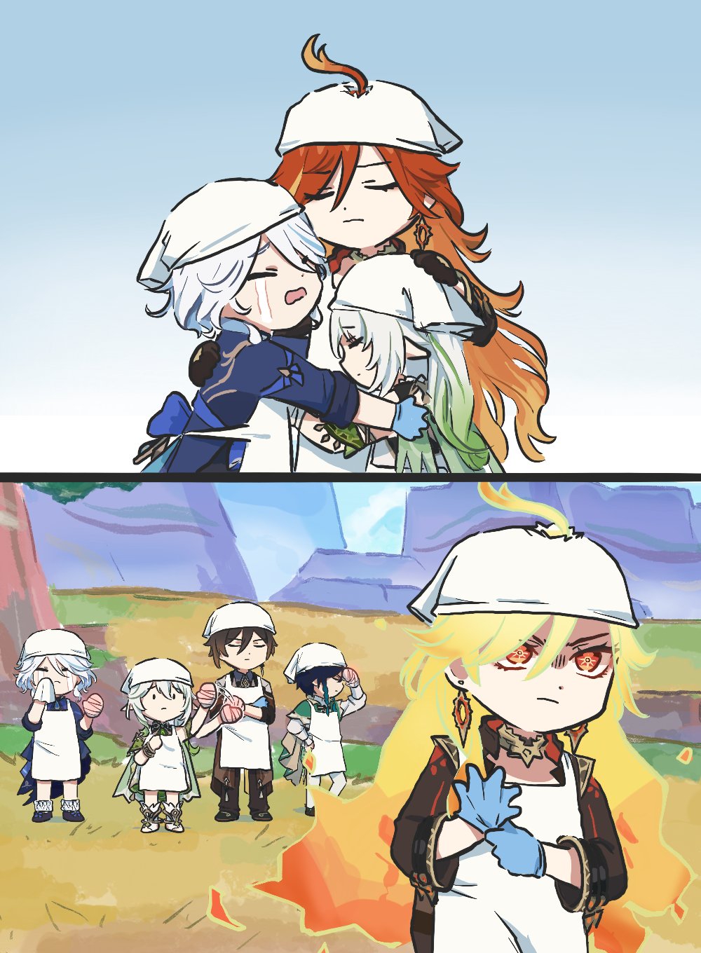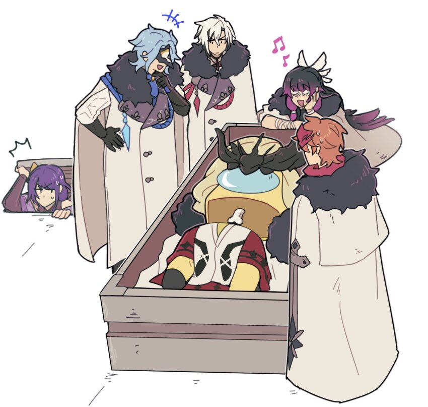 1) Орех 2) Фурина 3) Орех и Фурина 4) Орех в костюме Фурины 5) Фурина в костюме Ореха 6) Базилет 7) Фурина и Базилет 8) Арлекино 9) Фурина в костюме Арлекино 10) Всё вышеперечисленное в любых пропорциях
