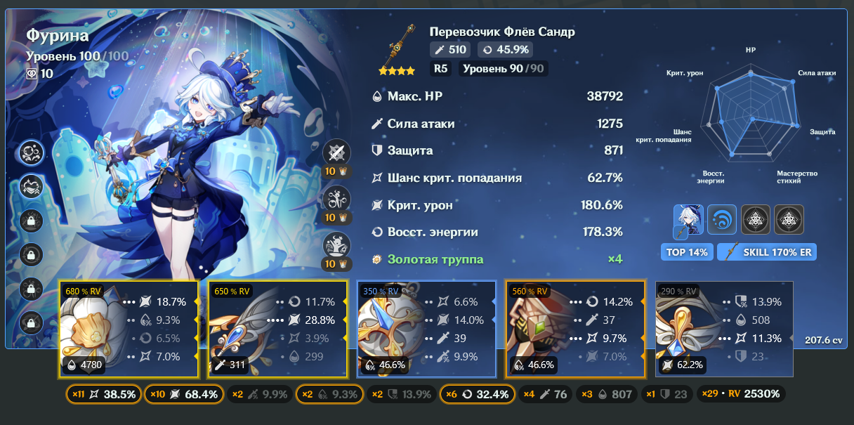 Пробежал утром 40 инстов, чтобы апнуть хоть один арт на Фурину. В итоге не одного не заменил, потому что падает просто ХУ Е ТА. Ляо, блять, насрал говнищем, будто арты на 4 стата вообще суперредко падать стали. Это при том, что моя Фуринка далеко не в топ арты одета.