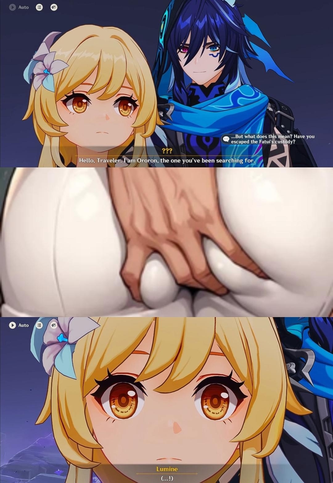 >>5662988 Слева направо, сверху вниз: Флинс: oya (опа) ХуТао: yo (привет) Сфх у призрака: go go go (звуки страха) Флинкс: kawairashii obake desu ne (миленький призрак) Сфх Флинса: fu fu (хи хи)