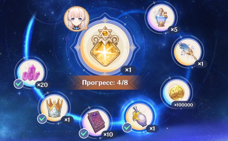 В театре можно заскамить ляо на все награды - сначала пройти простой режим на фулл звезды чтоб получить бутылочку, а потом арканы уже без звезд просто на все гемы