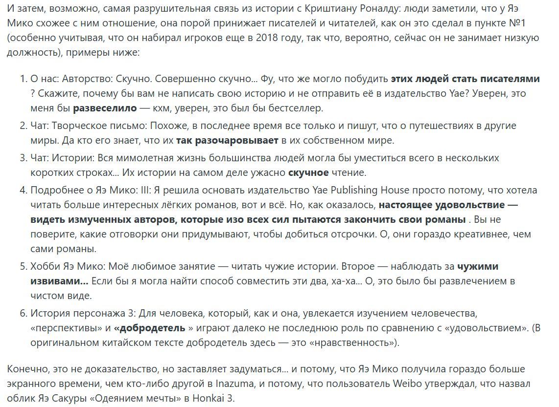 Но верится в слив слабо по одной простой причине, изначально мотивация Архива это полное уничтожение Хонкая о чём он прямо говорит в сюжетке ХИ3, при этом Лоча в конце своей сюжетки ХСР говорит, что хочет уничтожить Изобилие и он кому-то обещание дал, при этом он попросил Жуань Мей сохранить хвост Лисы. Здесь несостыковка мотиваций и характера, что такого узнал Архив Пустоты о хонкае, чтобы интересоваться уничтожением изобилия? Почему он повёл себя так с лисой? Слишком много вопросов