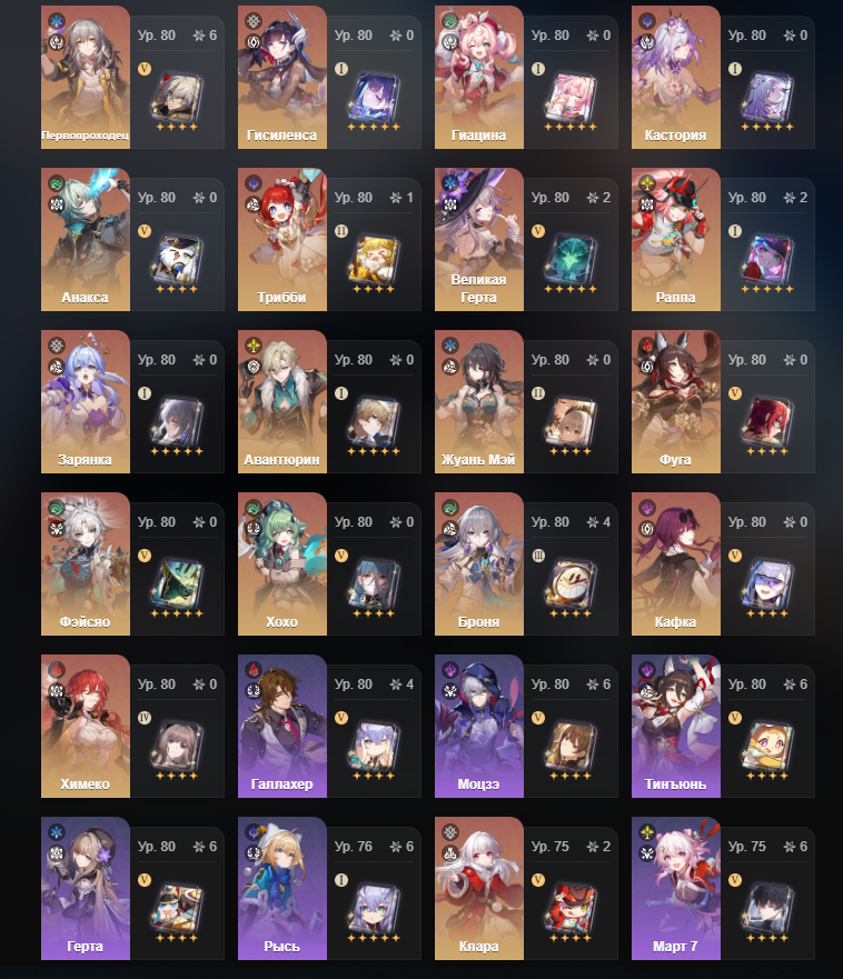 >>5672723 Есть е0с0 для пассивки, нет Гиацины. А так е2 Герту выкрутил и не стал добирать пачку, так как не очень интересный геймплей оказался + не зашла Трибби визуально. Кошку выкрутил с сигной. Есть приличный запас круток на Констанцию и 4.х. Жить можно в общем.