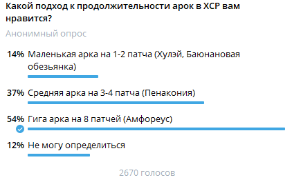 Как по мне, лучший вариант - совместить все 3 подхода в 1. Сделать один большой сюжет на всю версию, как Амфореус, но разделить на 2 части, по размеру мб чуть меньше Пенаконии каждая. А между ними вставить небольшую стороннюю арку, но чей сюжет не отвлекает от общего, а дополняет его.