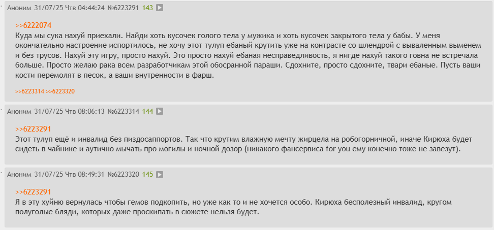 Пообщаешься с бабами в таких чатах и какая-то ненависть в целом к этой части "комьюнити" появляется, будто в самом деле инцелом становлюсь.