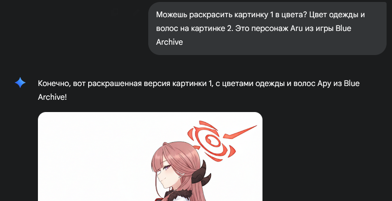 Я чату GPT сказал покрасить. В перый раз он вообще хуй забил на оригинал. Во второй раз я сказал как в оригинале и что он хуйню сделал, но нимб он всё равно покрасил в хуй пойми что. Потом сказал перекрась нимб, и сделай зубы, а он всю картинку перерисовал и правду еще и хуёвину эту на нимб заменил. Тяжело короче с чатом gpt управляться