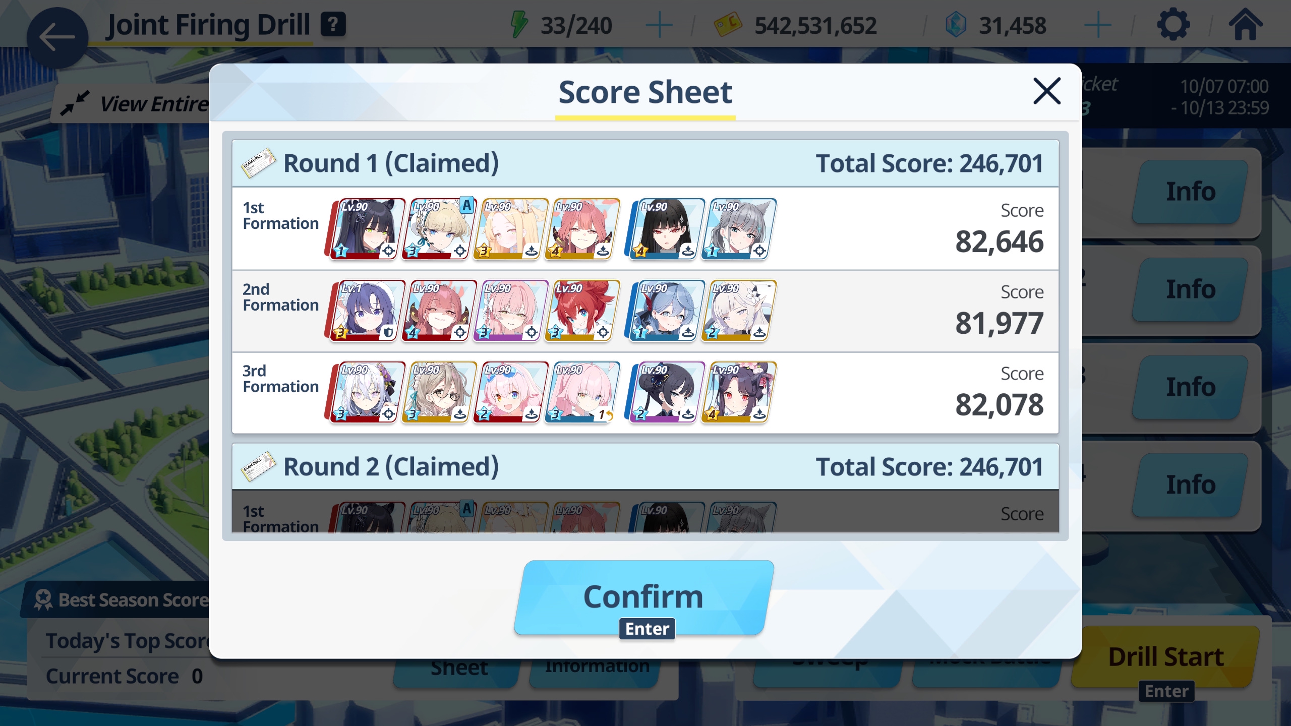 Всьо, оптимизация на неделю завершена, так и буду повторять каждый раз с комфортом. Пришлось маленькую загнать в самую слабую пачку, потому как она единственная кто может ваншотнуть коробку игноря деф. Токи стабильна и под бафом может соляком разделать каждый раз без рандома. Арю же такая дура, что без целой банды за спиной ничо не может, поэтому её в самый сильный отряд. Спецов пробовал - не дамажат.