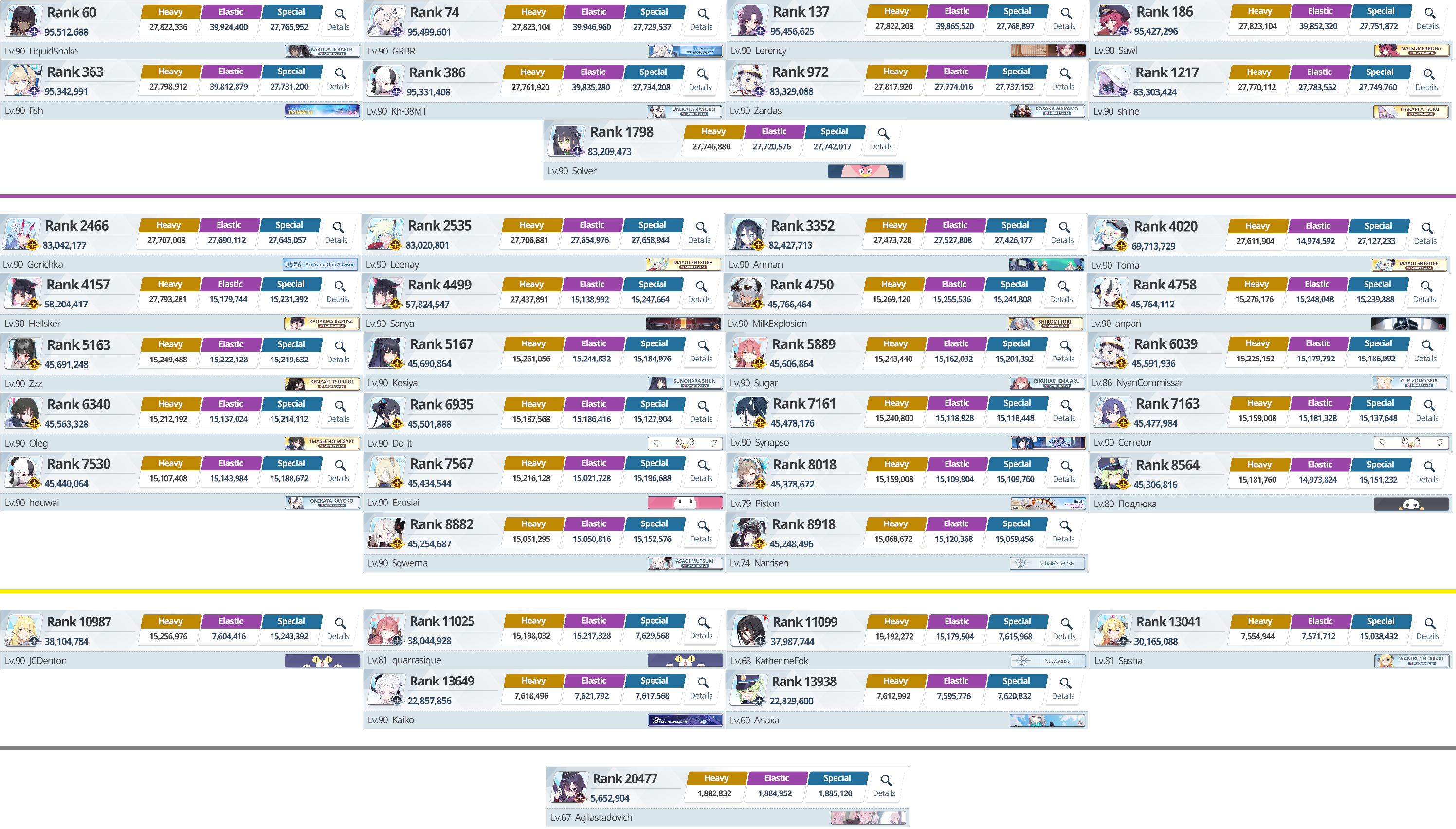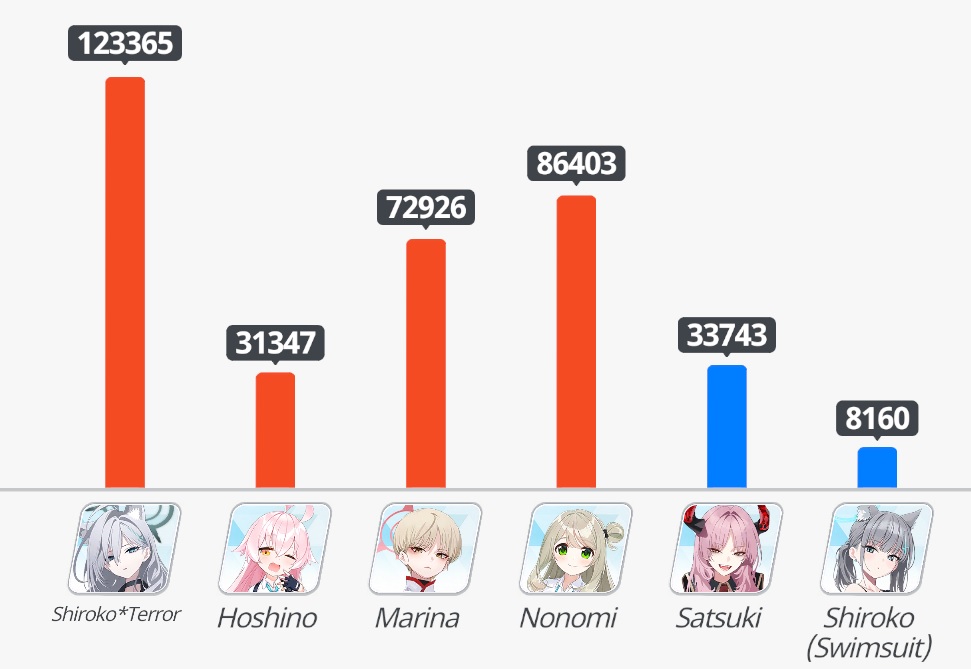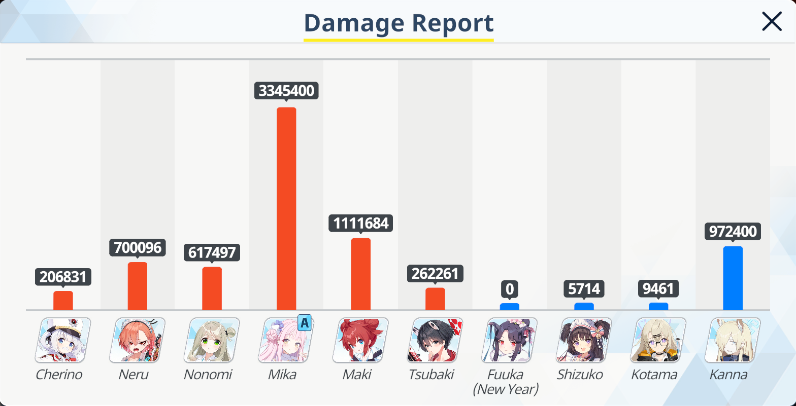 Я забил на этот челленж, есть уе50 Хина, но даже близко урона нет как у протыков с ютуба, на 1 красного челика надо фул залп, а пляжной Хошино забустить урон нет.