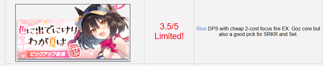 >>5790894 >под ендгейм Под эндгейм тут в основном саппорты крутятся, и в большинстве они в стандартном пуле, так что прям целенаправленно кого-то крутить такое себе, тем более там новые лимитки имеют потанцевал. А если так, то Кикую, она не мастхэв, но юзается практически во всём фиолетовом эндгейм контенте. Пляжная Изунька - дешёвый кост, таргет лок, высокая скорость атаки, лимитка. НО! Через 2 месяца будет годовщина, там мало того, что убермету выкатят вместе с халявными крутками, так ещё и аннивёрсари баннер будет иметь х2 рейты и очень маленькую, но возможность вытянуть прошлых юбилеек. Так что я бы на твоём месте тупо фармил крыни, чтоб не глядя запулить два гаранта.