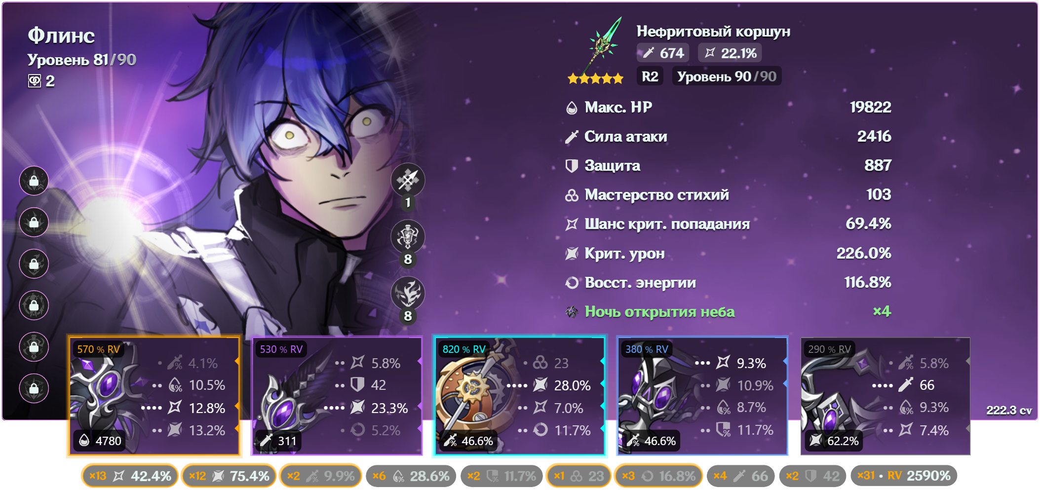 Мда, вскрылась главная трабла Флинса - в пачке нет хила, а это печально в нынешних реалиях, щит от Инеффы конечно неплох, но этого маловато будет, пару раз получил в щячло и уже грустно. У Мопеда вот Шилонен есть У Скирк есть Эскофье Даже у перегруза есть Шеврез, или Куки у дендро, а тут все грустно Так что или подвозят лунного хилера или Флинс быстро скисает и отправляется к Пиджаку в гости.