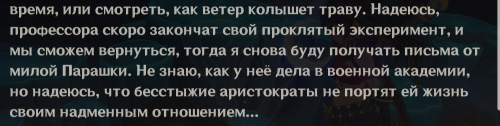 Из-за проблем со здоровьем не успел закрыть курорт Натлана и он висит на 60% до сих пор. Теперь не могу нормально проходить Нод-Край, потому что Натлан висит, но и за Натлан засесть не могу, потому что уже проникся атмосферой луны и сиськами Лаумы, возвращаться к тверкающим маниту как-то сильно из текущего настроя выбьет. В итоге ничего не делаю, просто в треде сижу.