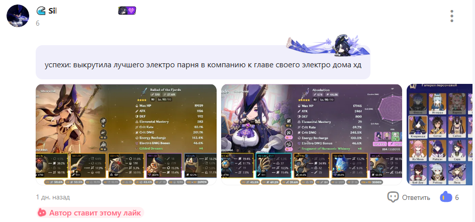 Алсо, как я чувствую примерный скиллсет Колумбы: >Аое наложение гидро прикрученное к активному персу >Скейл от МС и раздача МС тиме >Бафф лунных реакций >Хилл активному персонажу от МС колумбы >Купол луны/Поляна тех цветов