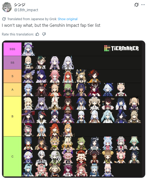>>5670162 Тирлист фапабельности персонажей геншина нужно составлять не по персонажам геншина, а по художникам. Потому что тех кто рисует нормальный геншин прон можно по пальцам пересчитать.