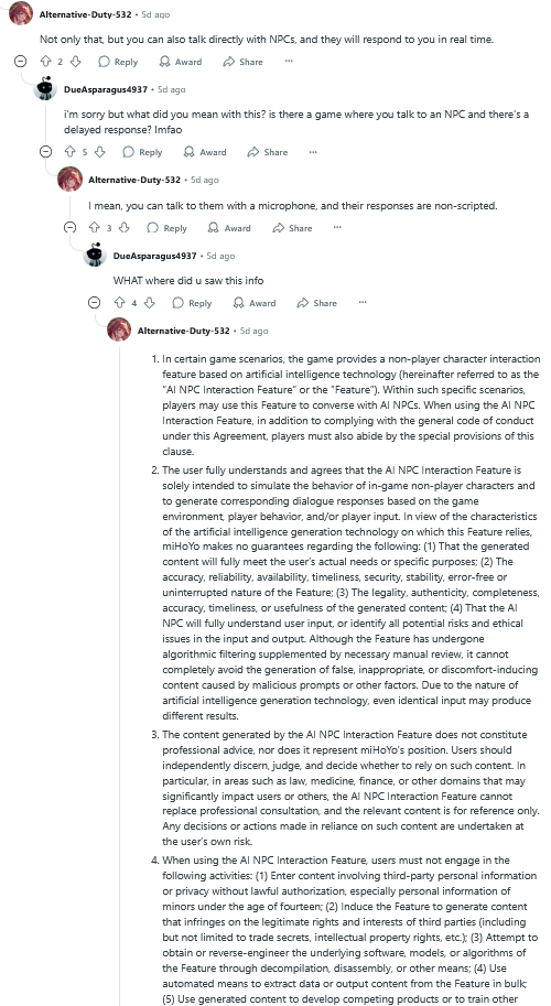 Когда ляо даст в геншине поговорить в реал-тайме со своей вайфушкой? В хонкале будет ИИ-чат с пом-пом. А в ляокроссинге можно будет общаться с жителями как с живыми, они будут отвечать не по скрипту, а по теме, которую ты задашь.
