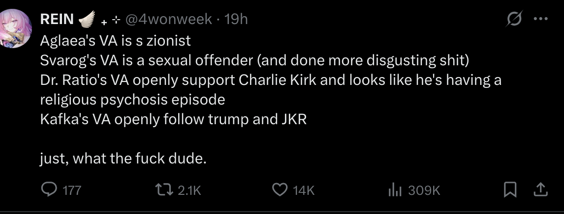 >>5674640 Если судить по зенлесс треду там один Лайтер доставил местным идейным вайфугеймерам больше боли чем Фаенон, Авантюрин и Пожиратель Луны вместе взятые. Они из него сделали своего Невилета. У нас такого никогда не было.