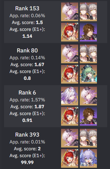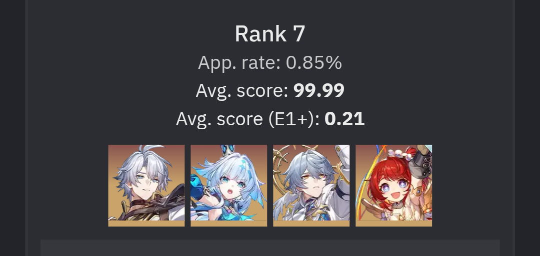 >>5676719 Там отдельно показывает е1+ скор. По той же Фуги у которой минимум 3 команды вообще 0 результатов. >>5676723 Там даже 0.1% показывает команды, ещё меньше чем 0.1?