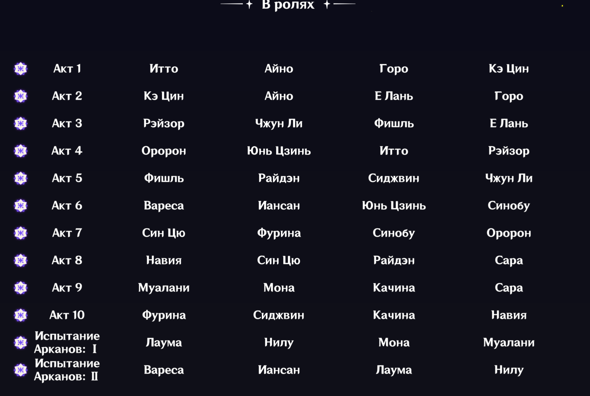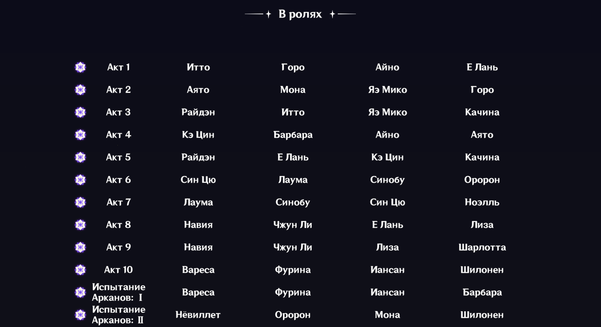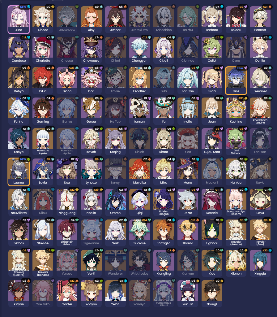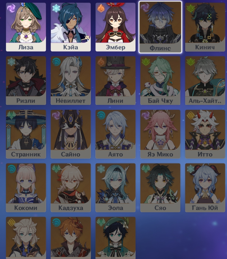 Я считаю, что в каждой стихии есть набор пятёрок-универсалов, которые желательно прокачать для средних этажей: Пиро - Дашка Крио - Коза Электро - Писа, хотя там четвёрок сап-дд много Гидро - Витёк/Вишап Дендро - Квашня/Змееёб, ну и Нахида много у кого есть (а в остальном нужны носители сета) У Анемо вообще в основном достаточно носителя сета (ну мб ещё Фарузан вкачать при наличии хотя бы С4) У Гео плохо, лимиток маловато, и обычно ресеты требуют Навию, Шило и Деда; может быть, Чиори сможет заменить одного из них