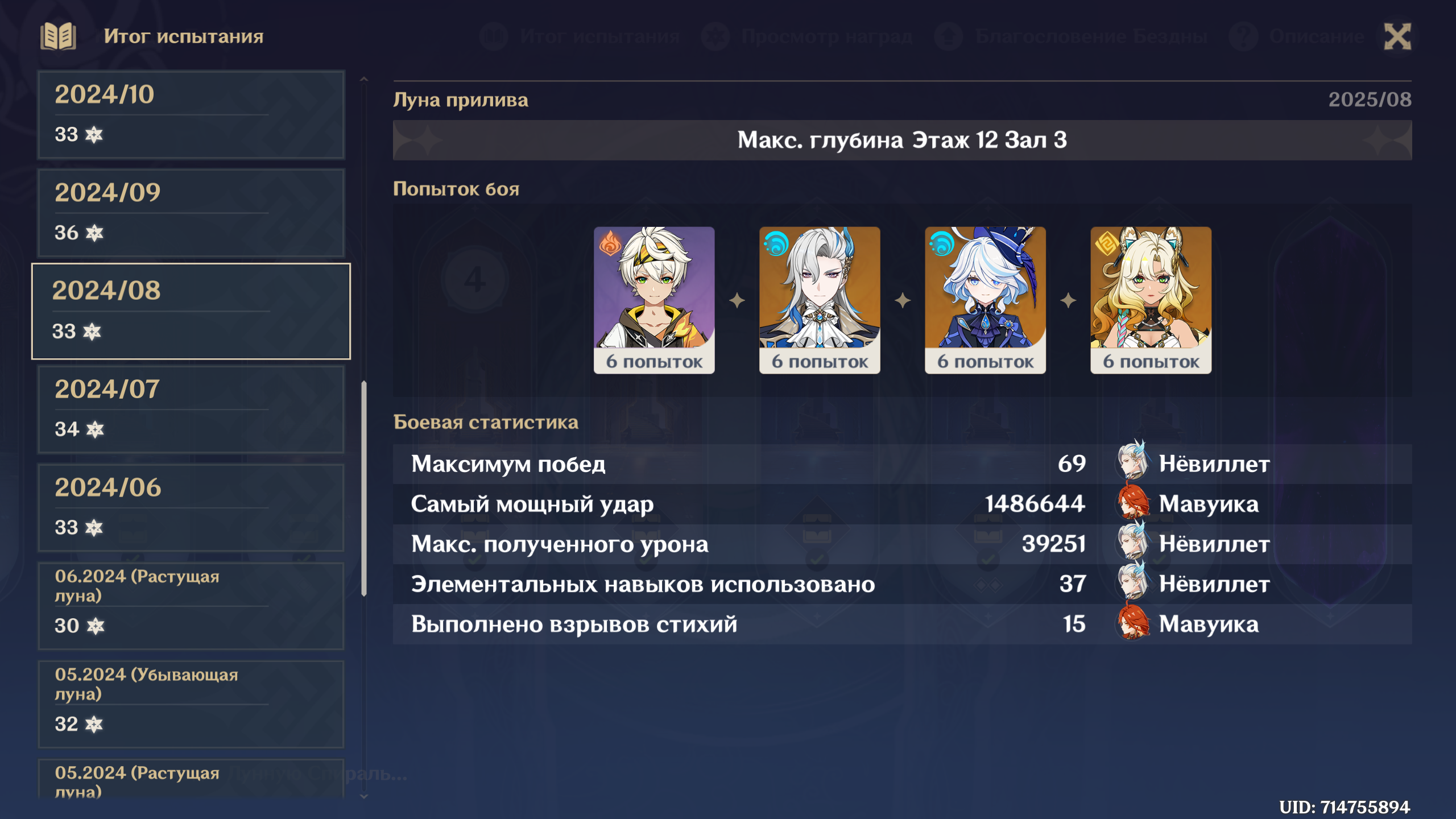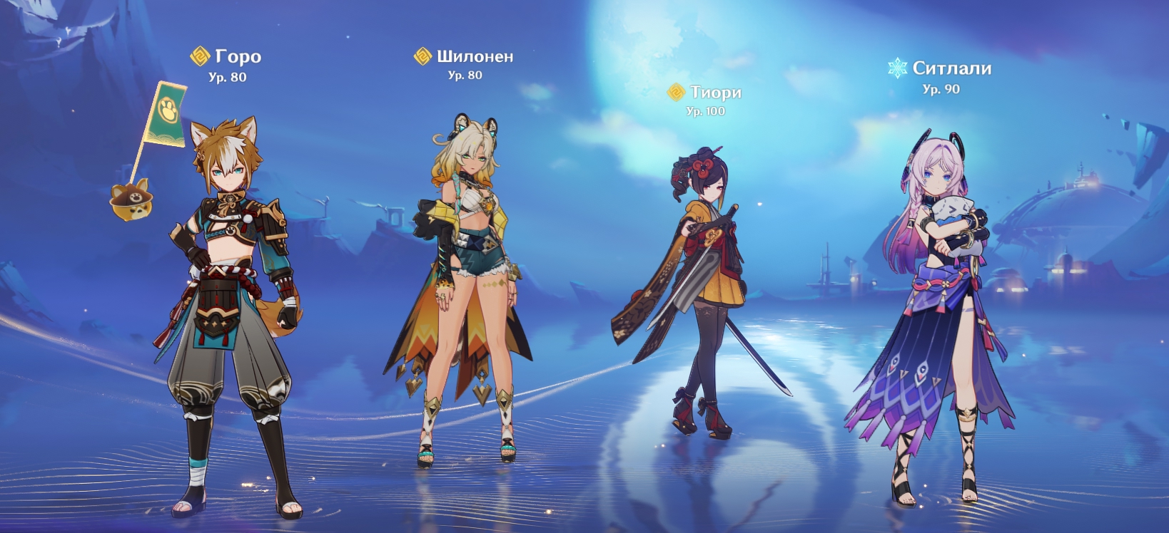 Кирюху принципиально крутить не буду т.к. он мужик и есть хлорка, лунные говнобутоны не вставляют ваще. Вегетация рулит. И того - ни одного лунного персоанжа. Оба ДД играющие от электро и дендро отсутствуют. Нефер крутить не буду т.к. лабубы нет.