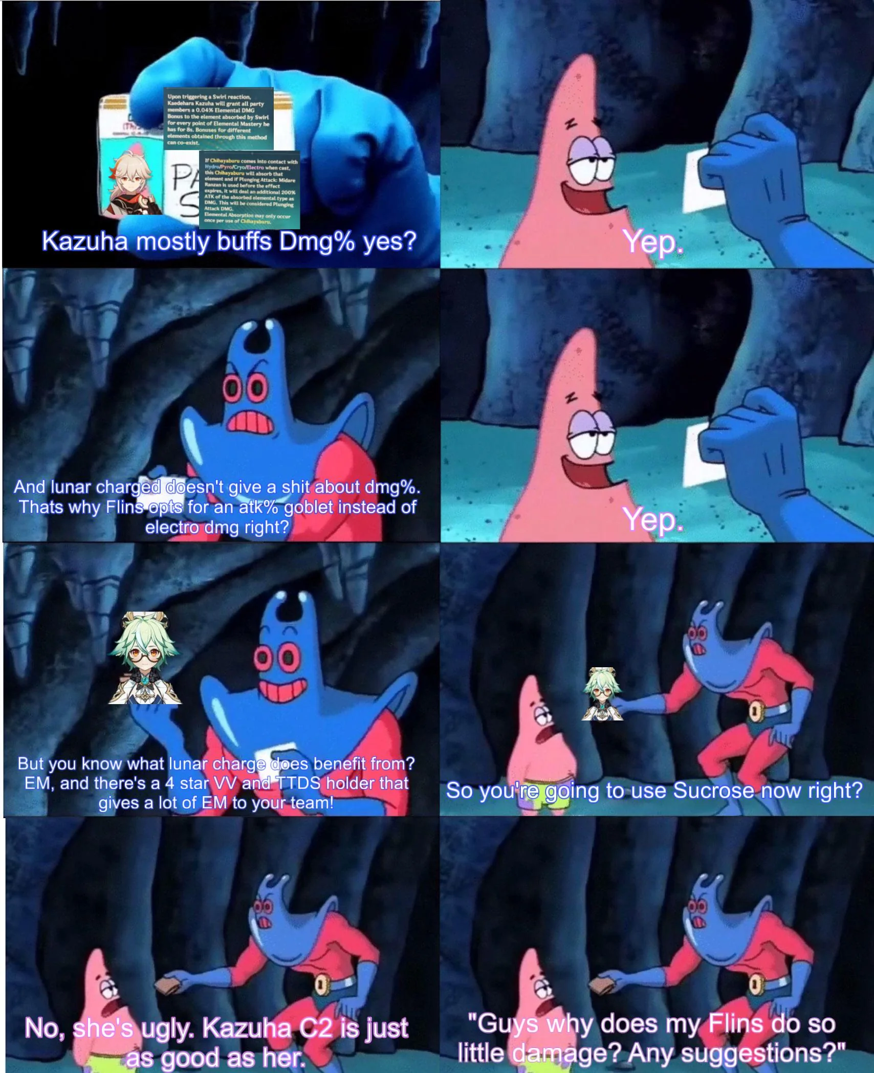 Вот вы на завриан жалуетесь, что исследование кокблочили. А вы что забыли, где была самая лютая душка на занюх? В ебучем Сумеру. Практически не было какой-то вариации для пачек и ходил рофлоотрядом для загадок.