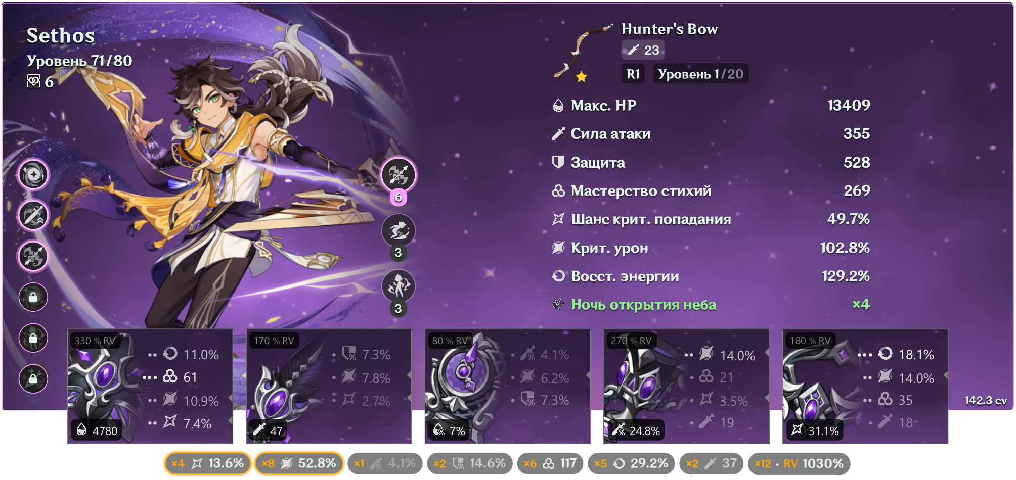 >>5686262 По paimon.moe сложно судить. У тебя сколько персонажей собирается? И сколько из них прокачены? Вижу, что четвёрок хватает (у Электро их много), некоторые с хорошими констами. Есть С2 Дыня - одного из боссов она заборет. Корова закроет ещё одного + одну аркану. Лаума, по идее, закроет вторую. Для остального есть Базилет. Тут правда только ретраить с говничами вначале (Пастушонка вообще лучше даже до первого босса не тащить, любой двурук быстро закроет - та же Айно). Просто сливать все очки в карточки персонажей (перед боссами, кстати, они теперь вроде как гарантированно падают). Торта я бы воткнул как вторую затычку на средних этажах (к тому же Сыне, например). Мистер Смыв может обойтись и Моной, или вообще сыграй его в 4 стихии (хотя у тебя С1 есть).