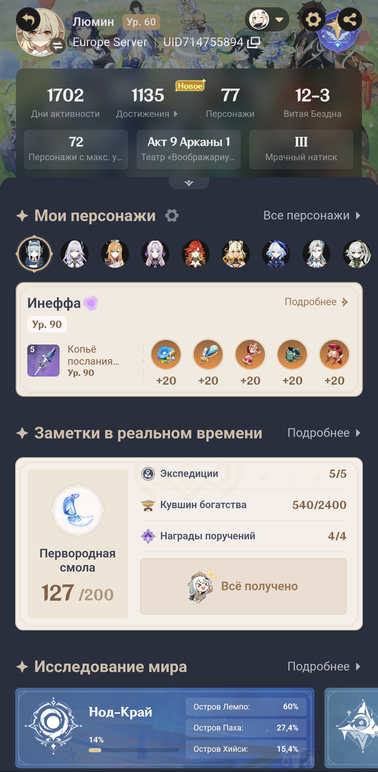 Мне кажется ляо меня окончательно сломал. Я уже не хочу себе зоопарк бесполезных и кокблочных персов. Я хочу попробовать замаксить в этом скиповом регионе двух новых чаров по максимуму и вытащить с0 Марионетку. В идеале получить им с2-с6 и с1 Инеффе. Все остальное тотальный скип. Хз, натлан ли повлиял, или попилы типо Скипк, Нефер и Инеффы. А может неприятный театр. Или просто устал от кучи разных персонажей играющихся уже почти как в хср патча 2-3