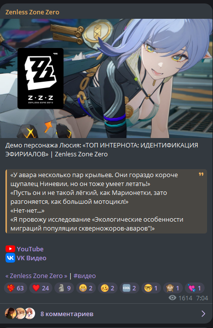 Демо персонажа Люсия: «ТОП ИНТЕРНОТА: ИДЕНТИФИКАЦИЯ ЭФИРИАЛОВ» | Zenless Zone Zero
