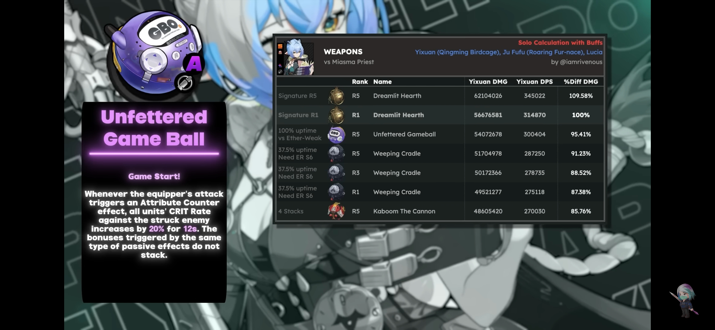 >>5697953 Люську Пандой можно заменить, а Фуфу сложнее, уж очень хорошо пассивка на расширение окна децибел и заливка 300 децибелпосле ульты для Писюани. Возможно максимум дпс можно выжать и без Фуфу, с Триггой (особенно с сигной) например - но с Фуфу высокий результат берётся подпивасно