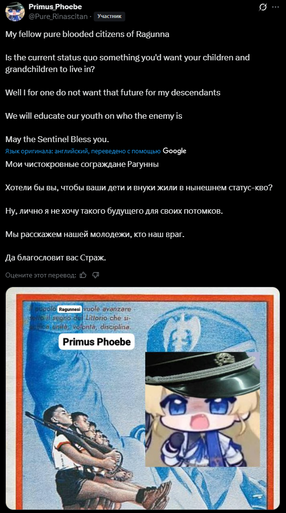 В гашню не играю уже но смотрю трейлеры (единственное что у них выходит хорошо). Проиграл со спизженной ульты Инлинь. Мб они новый регион пилили как раз на релизе вувы и ща у них пойдут персонажи inspired by kuro, лол.