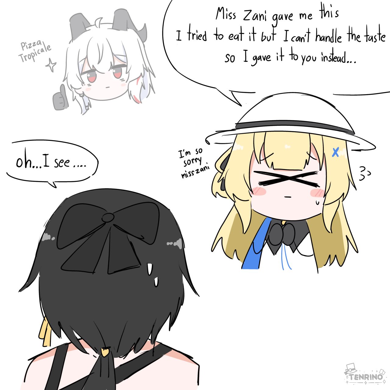 >>5704851 Картоха ненавидит тропикале, в башню можно было ей принести попробовать на что она ответила в стиле "это вообще еда? убери этот мусор". На годовщину были забавные факты где говорилось про то что Фиби всю скукоживает от кислой пищи. Плюс она на миднайт подкасте отрицала существование пиццы тропиКАЛе. Но видимо Зани воспитала девочку, каноничная пара как никак.