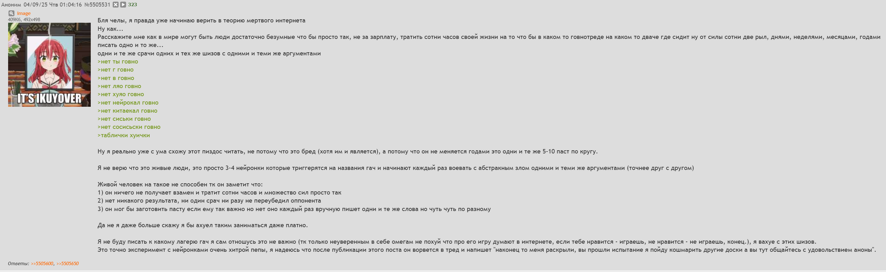 >>5701914 Чтож так овнить с двух ног то? Я же не СоциоУспешникТян 400к н/сек, а обычный заводчанин этот мир не для меня и не таких как я, я в тейвате поселился