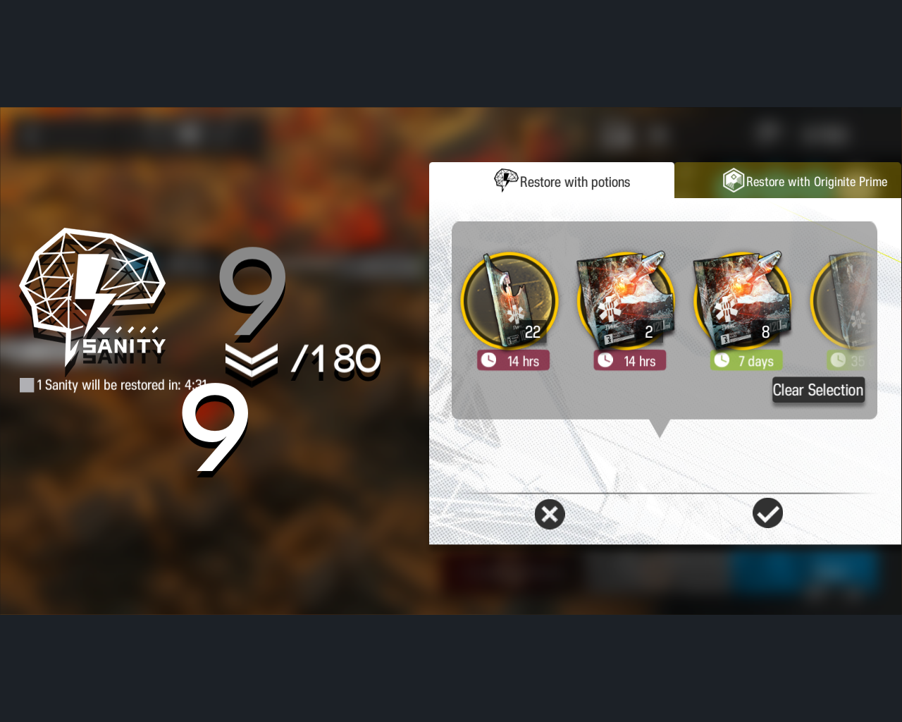 >>5708415 Ты реально санити не тратил месяц? А чем ты тогда занимался в игре все это время? Если че - это ресурс, который тратится на прохождение карт, он регенится со скоростью 10 санити в час до лимита.