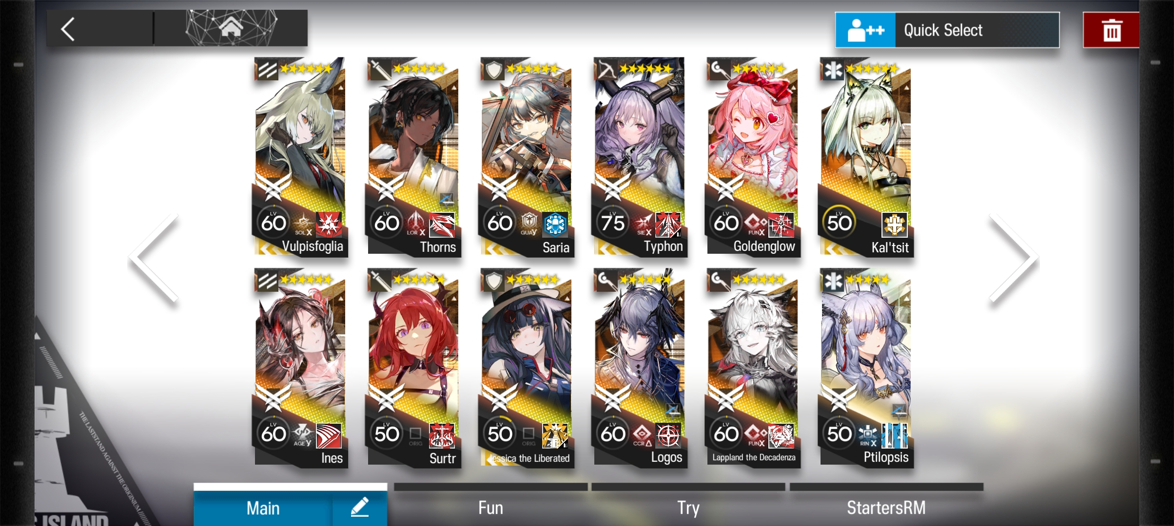 Кернел локейтинг 21го. Кто-то там хотел Найтингейл. На выбор из шестёрок: Surtr, Nightingale, Passenger, Mostima, Saria, Archetto, Ceobe, Bagpipe, Ifrit, Skadi, Ch’en, Angelina Пятёрки: Akafuyu, Shamare, Ptilopsis, Texas, Kafka, Projekt Red, Elysium, Platinum, Waai Fu, Istina, Reed, Mayer, Croissant, Glaucus, Iris, Leizi, Asbestos, Broca, Mr. Nothing, Leonhardt, Toddifons, Chiave, Flint, Aosta