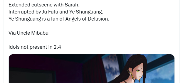 Хотя мне интересно, кто станет её заменой. Мне кажется как её уебнут, а скорее всего это будет в 2.5 или когда там будет сеструха и кроль, а если не уебнут, то будет боссом скорее всего с клиффхенгером. А если сдохнет, то скорее всего заанонсят подобие Фатуйцев.