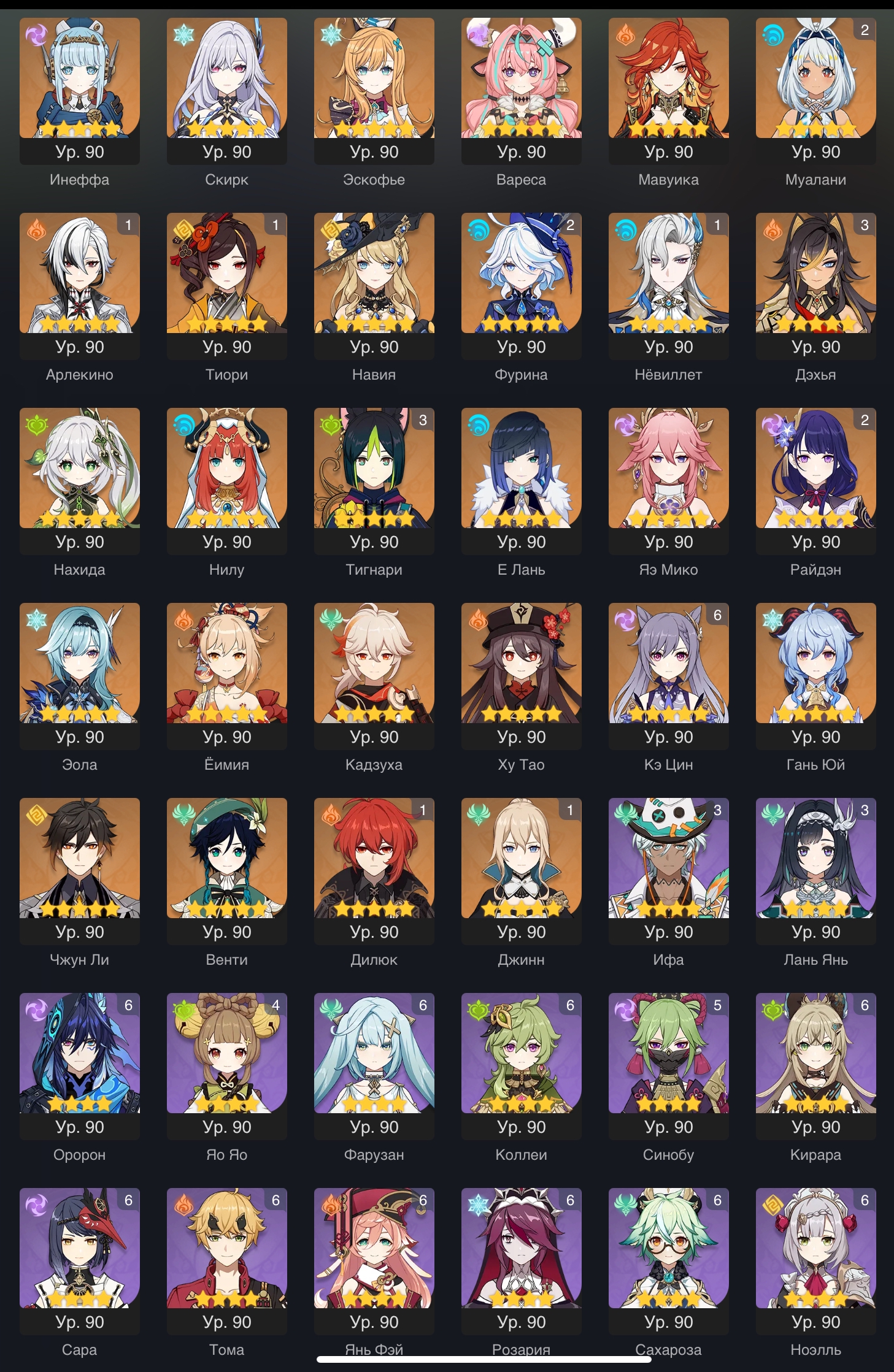 Тяжело врываться после долгого перерыва, надо качать сразу кучу новых персонажей. Не хватает смолы, не хватает книжек. Артефакты ели-ели падают. Завтра аванс будет куплю себе луну и бп, с бп лутану книжек на ап одно из чемпиков до 90 лвл хватит. По порядку буду Шилонен, Кирилла и Елань апать. Следующим моим чемпиком будет Фурина и потом Арлекино.