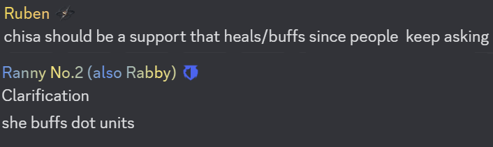 Вообще я уже сам уже отошел от начала. Началось то всё с того что Чису масложопы оформили в сапы. Вайфувичку было бы похер, он бы выкрутил с6 и так (ну или с чего он кайфует, каждому своё). Но человек был ОБИЖЕН на Писевора за то, что теперь персонаж "не дамажит", вот я и пошел спрашивать почему для него так важны числа что за них он готов открыть кошелек.
