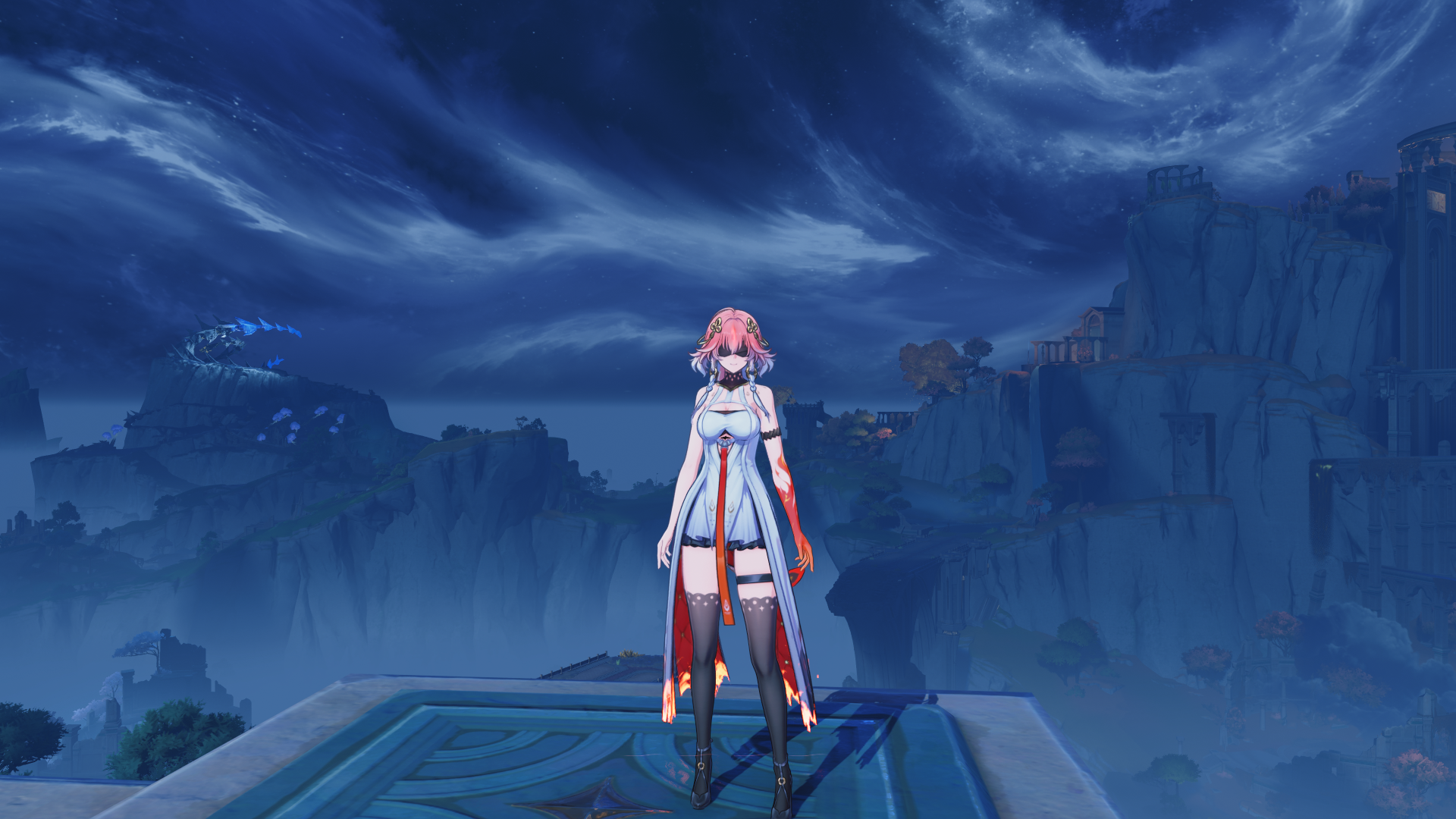 Мне кажется или это Гуйсю? Это к слову о том, что в 2.8 по масложопиям ее город родной представлен. Будет забавно, если он тоже был разрушен черной дырой от Плача.