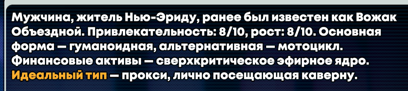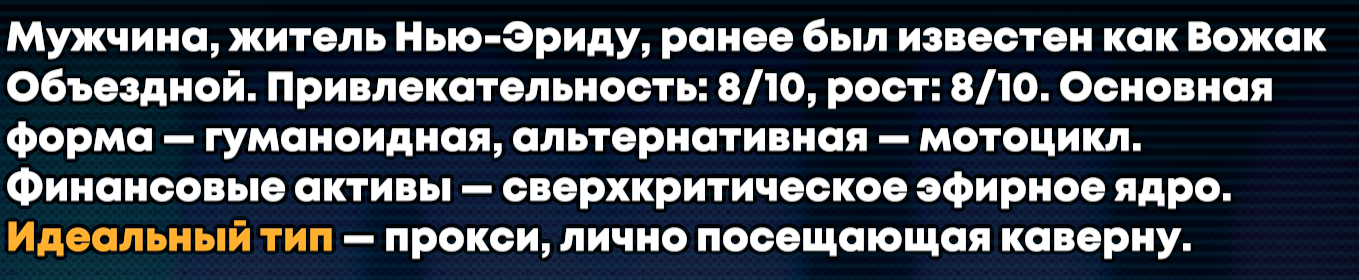 >>5726498 Понятия не имею, я ж скипальщик, вот и решил уточнить у человека, который с каждого трейлера копиум сдоил про Вайзика, просто слышал, что он во время мейн-сюжета с кем-то в койке лежал, но с кем же? Тайна
