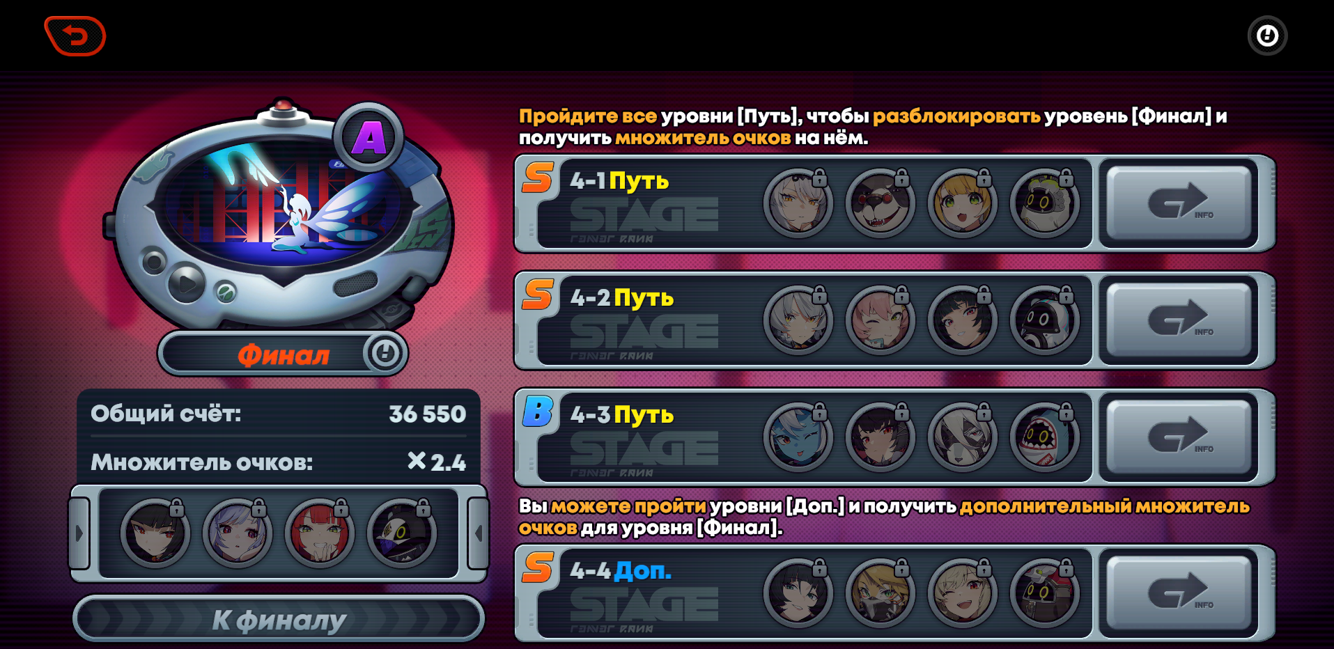 Однако, если финальная пачка пиздато собрана, можно вообще скипнуть всех промежуточных боссов, кроме первого и настукать необходимое количество очков ими, не трогая вообще ничего больше.