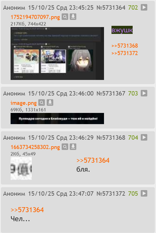 А что, мужики? Что мы, Дай Вея что ли подведём? Мы жуки-плавунцы или мужики вайфу энжоерские гречневые? Али не накрутим вайфучек два эйдолона? За гроши совестью мужицкой приторговали? Да нет, я по глазам вашим мужицким вижу, что тут фритуплейных нет.