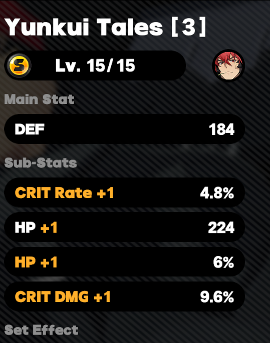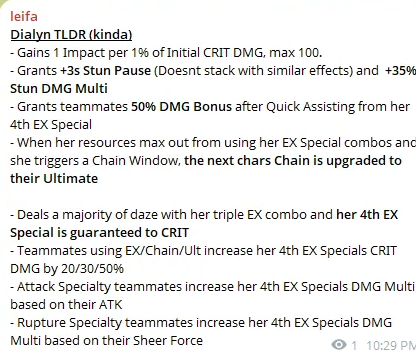 When off-field, the wielder’s Energy Regen increases by 600 per second. When the wielder uses a [EX Special Attack], the Daze dealt by their Physical ATK increases by 16%, stacking up to 3 times and lasting for 6s. Re-triggering this effect refreshes the duration.