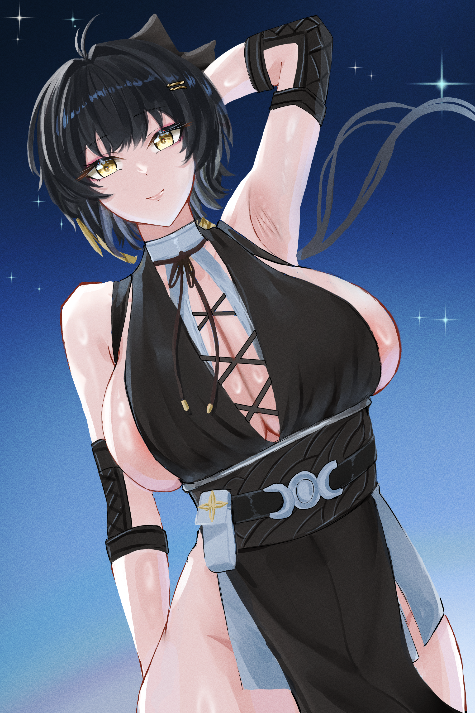 Я уже представил Гяру в обтягивающем топике и тассетмарка на правой выпирающей груди.