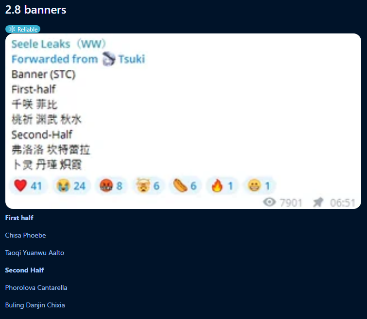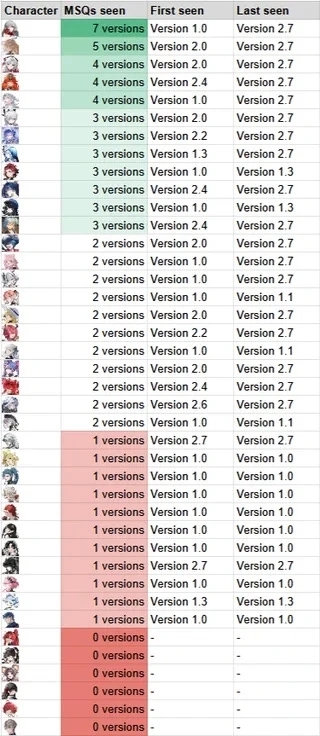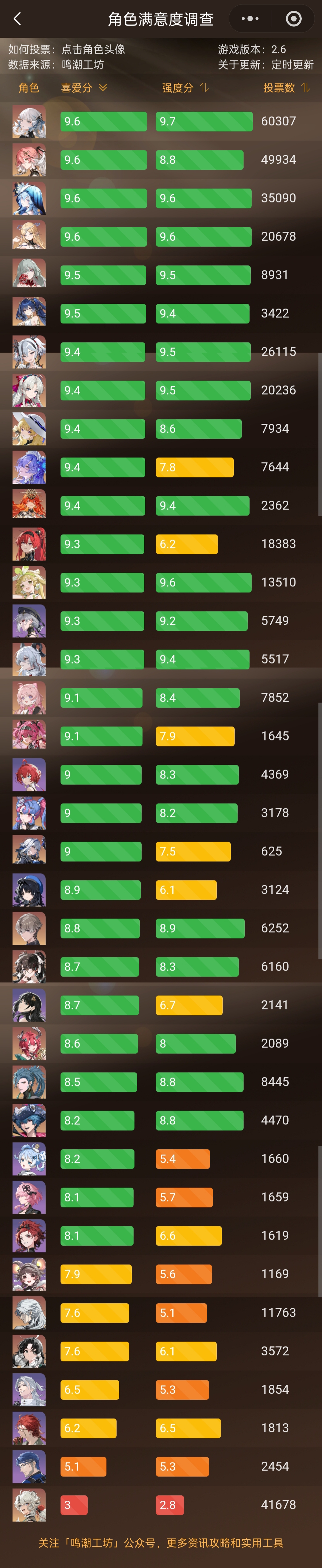 Если вам не нравится китайский овнершип, то я нашел в вичате просто рейтинг персонажей. 1 столбец оценка внешки, 2 удовлетворённость боевыми навыками, 3 количество голосов Думайте