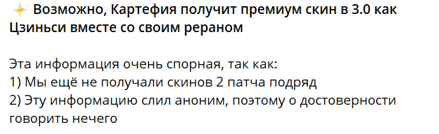 >>5748828 Так его и сделали вообще 4зв. Даже не 5зв как у Чанли и Карлотты, не говоря про премиум как у Цзиньси. Но вообще про скин на Картефию - я бы пока высказывался бы осторожно. Все это вилами по воде писано.