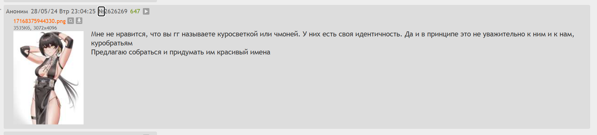 >>5747557 К самому прозвищу претензий 0. Проблема в долбоебах, которые используя конкретные слова или аватарки конкретных персов несут хуйню в треде.
