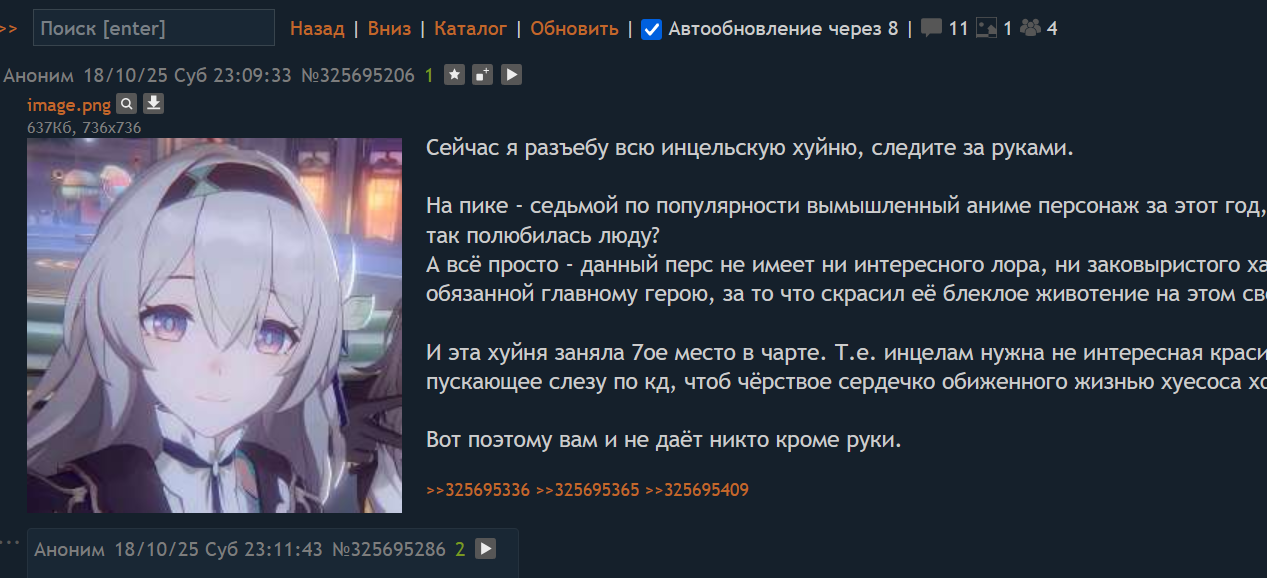 >>5751975 У меня нет ни одной претензии к тому, что-то кто-то крутит сосисонов, но я их крутить не хочу. И конкртные сосисоны в хср мне не нравтся в целом по сюжету и т.д. Причем в Геншине у меня есть Дед и Казах, я тогда еще был меташвайном, но в целом не жалею об этом. Но тут парочка залетных наехали на меня изначально, а затем побоялись показать свои аккаунты, обвиняя при этом в падисарстве меня с моим одним Гепардом.