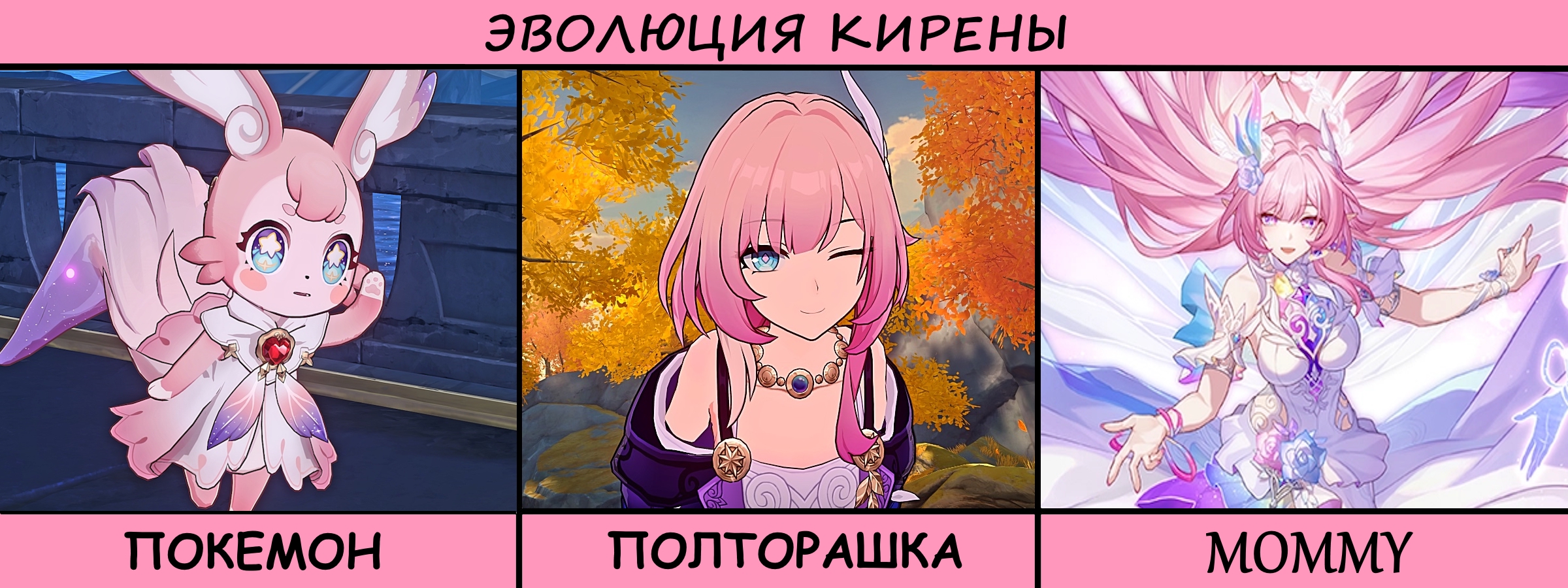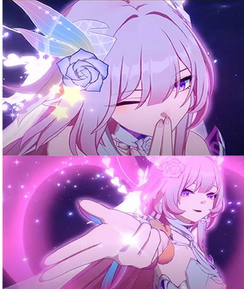 У нас есть 3 персонажа: Кастория - раскаченный визуалом с глобал пассивкой аниверсари-чар, тут тебе и особый геймплей, и особый мемоспрайт, и территория. Март - лицо игры. Кирена, ака Элизия, один из столпов Хонкала. И... Гиацина. Филлерный чар с историей про некую Селеозу (ху?) и реюзом внешки Барбары, без прямой отсылки на ту.